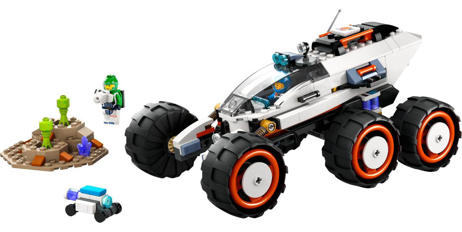 - Vehicul spatial futurist pentru joaca fantezista – Acest model de rover spatial contine un cockpit detaliat pentru 2 persoane, precum si 6 roti cu anvelope mari si suspensie avansata pentru a traversa planete extraterestre;